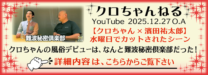 たくさんの経験があり遊び慣れた芸人さんが風俗店である難波秘密倶楽部をTVやラジオでわざわざ話題にするということは、それだけ信用頂いている証だと自負しております。難波秘密倶楽部がTV番組で話題にされた一部をご紹介します。